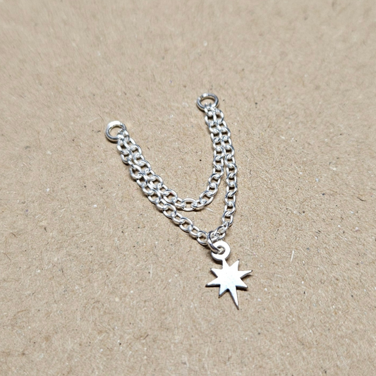 925 Sterling Silver Chain with Star Charm for Helix Cartilage Existing Stud. Ear Chains