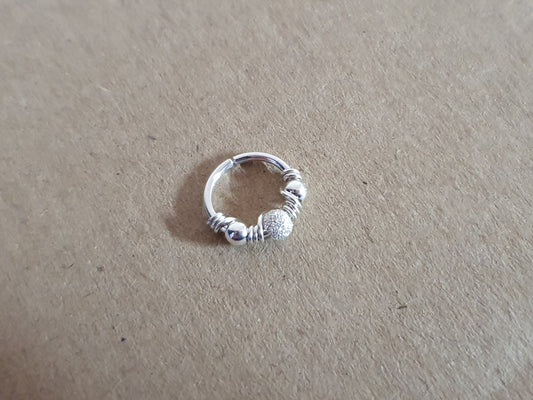 Sterling Silver 925 Cartilage Seamless Hoop Earring Nose Ring with Sparkly Bead. 18g 20g 8mm or 10mm