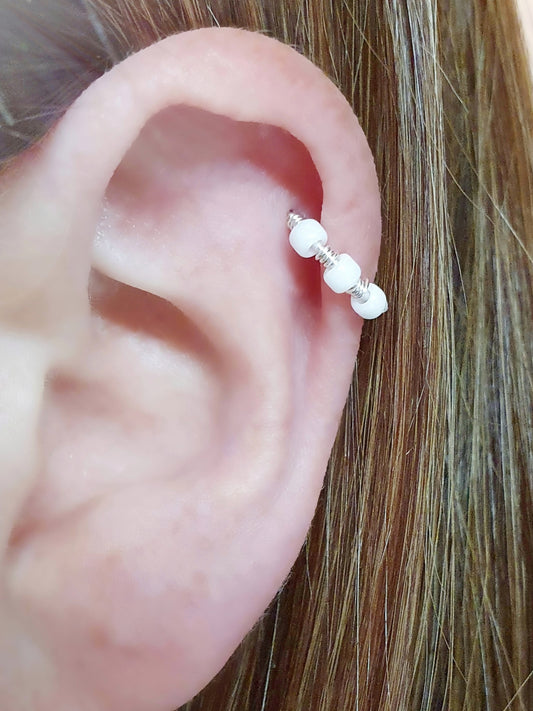 Pearl White Bead Sterling Silver 20g Helix Cartilage Seamless Hoop Earring. 8mm 10mm Inside Diameter.