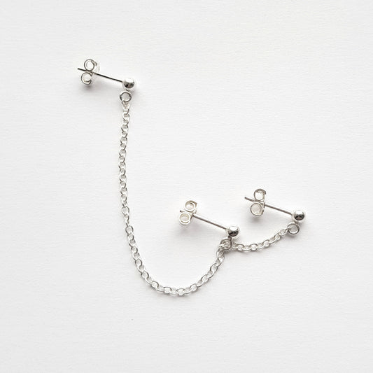Sterling Silver Helix Cartilage to Double Lobe Earring. Triple Stud. Double Chain.