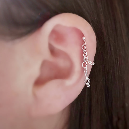 Sterling Silver Heart Chain Helix Cartilage Earring. Single Earring.