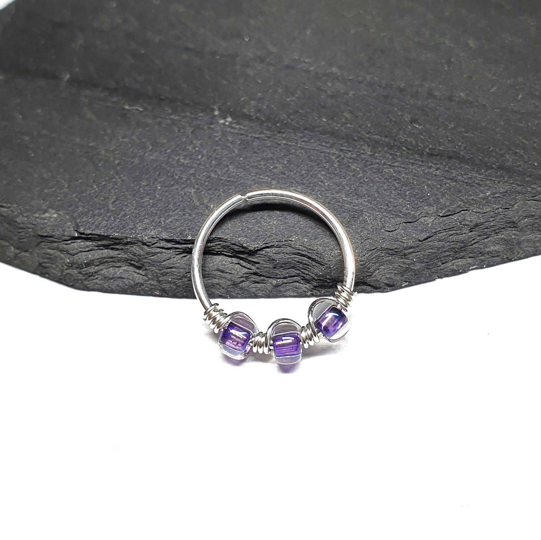 Clear Purple Bead Sterling Silver Cartilage Seamless Hoop. 20g 8mm 10mm Inside Diameter