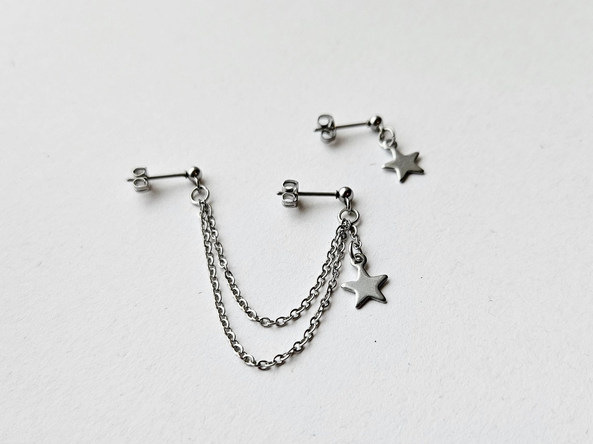 Star Charm Stainless Steel Double Chain Helix Cartilage to Lobe Earring