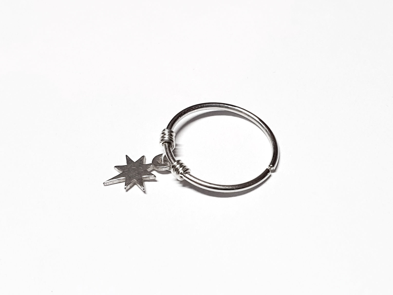 Star Charm Sterling Silver Helix Cartilage Hoop. 8mm 10mm