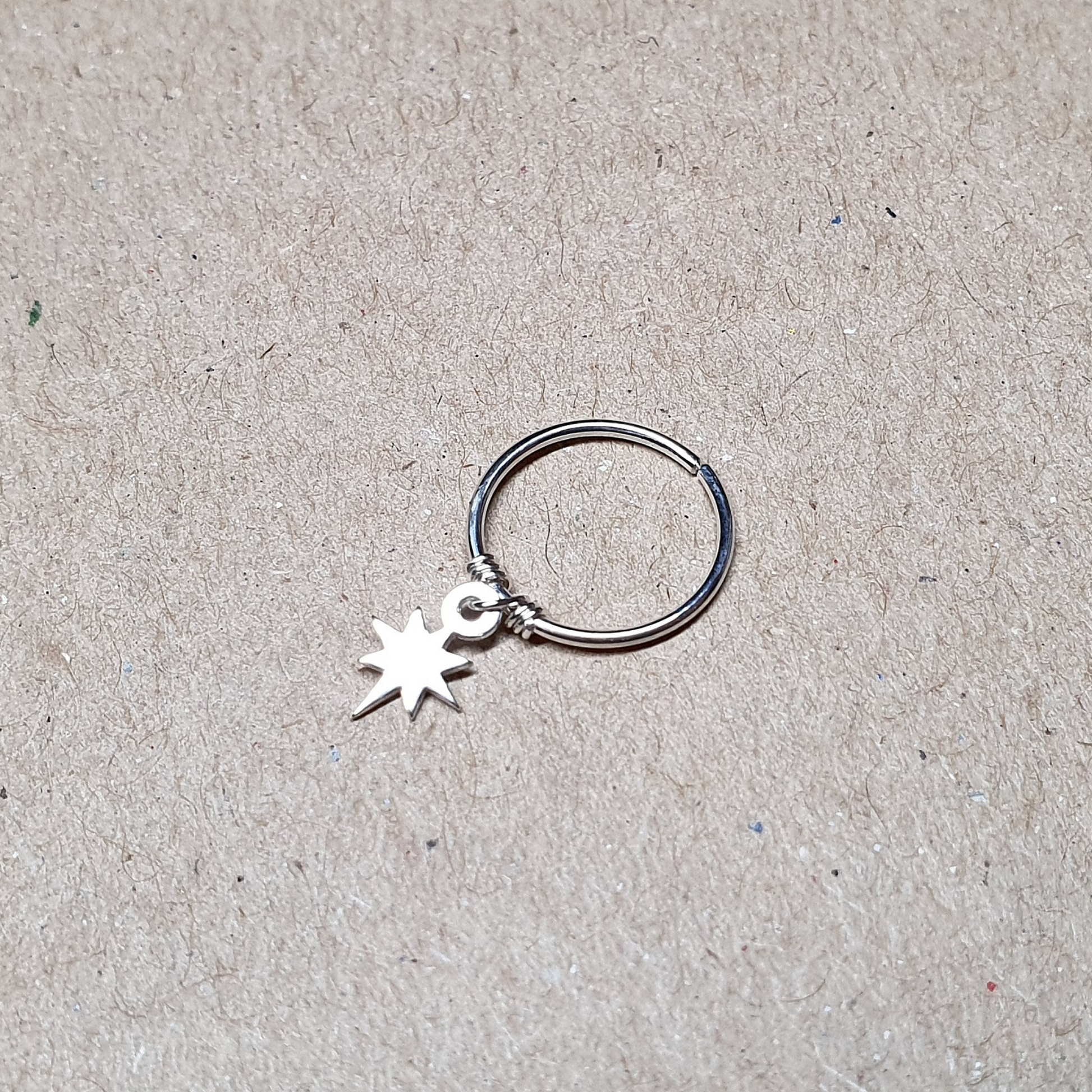 This hoop is made of 925 sterling silver and has a tiny sterling silver star charm.